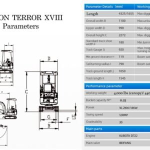 TYPHON TERROR XVIII Prestige 2 Ton Mini Excavator KUBOTA D902 Diesel Engine USA